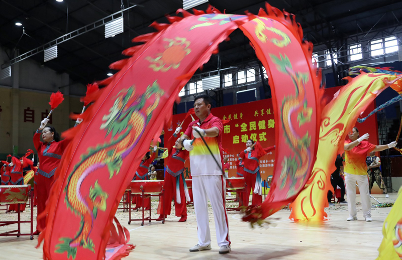 8月8日,市民在2025年许昌市“全民健身日”主题活动上表演“健身龙”。当日是第17个“全民健身日”,我市举办2025年“全民健身日”主题活动,通过全民健身节目展示表演,点燃市民的运动热情。 牛书培 摄