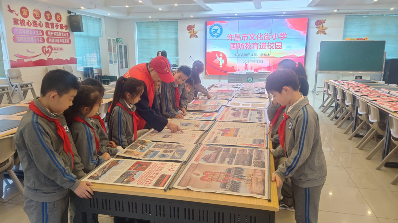 9月18日,我市税务系统退休干部李纯杰来到市文化街小学,将近年来在《人民日报》《许昌日报》等报纸上刊登的有关国防教育题材的稿件做成的剪报进行集中展示,提升学生们的爱国情怀和国防意识。 孙江锋 摄