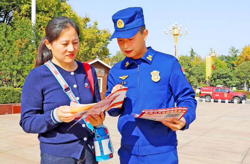 11月9日,魏都区消防救援大队在许都广场开展消防安全知识宣传活动。消防员用通俗易懂的语言讲解日常火灾隐患排查方法,以及灭火器、自救呼吸器等器材的正确使用方式,有效激发了全民关注消防、参与消防的热情。 谭宜姝 摄
